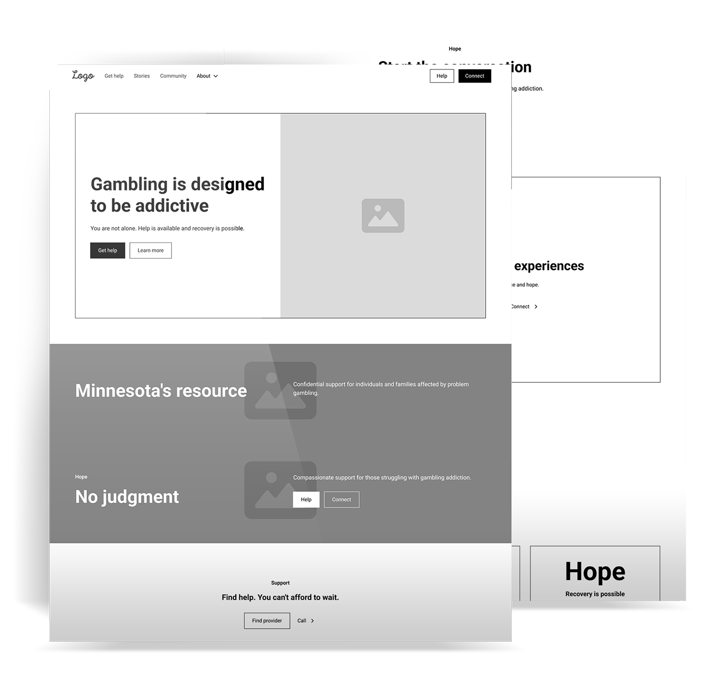 I worked with the team to center three paths. For yourself. For someone you love. For counselors and community. Helpline, text, chat, and a provider search sit up front. The site leads with hope and plain talk.