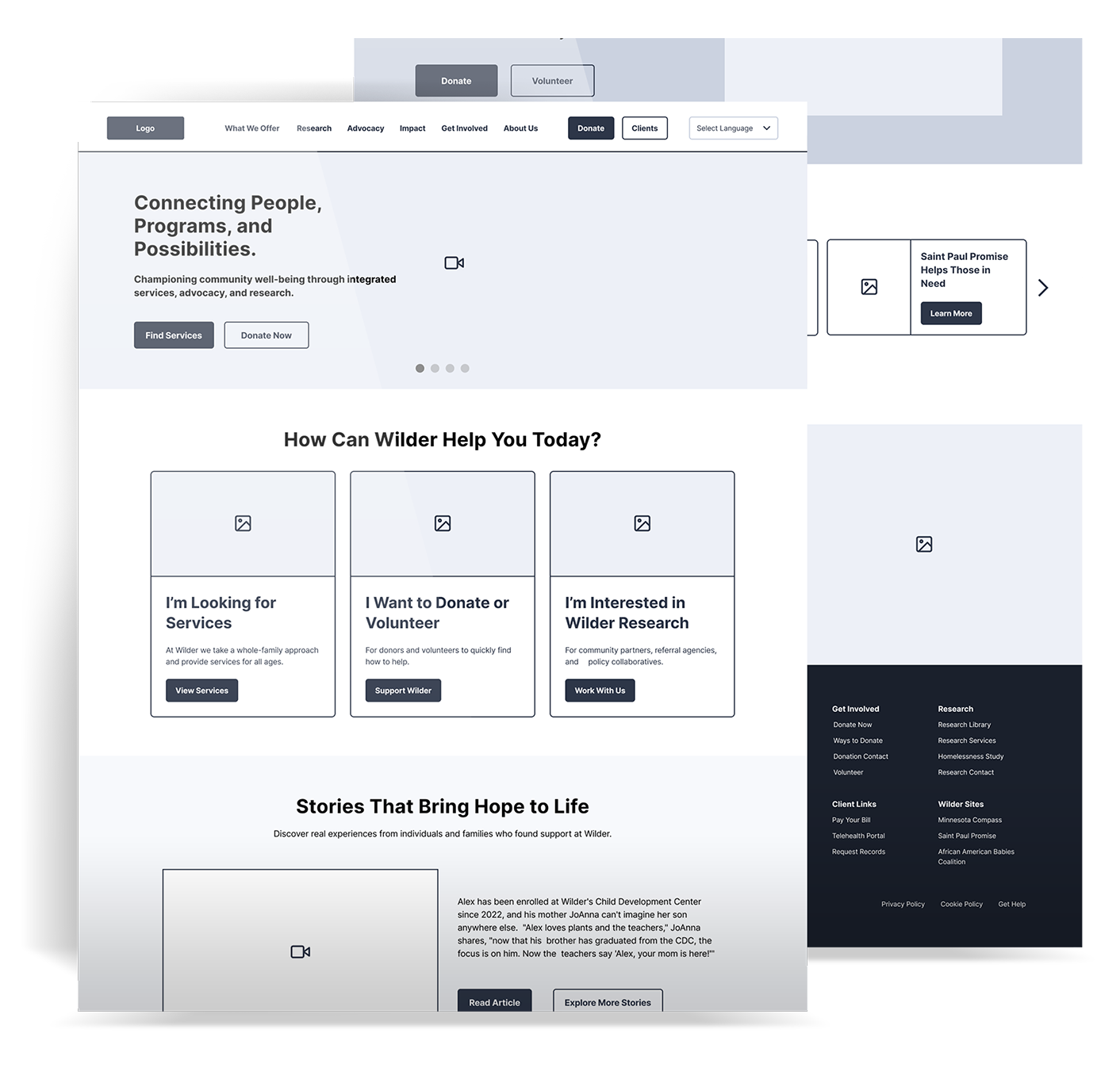 I applied Wilder’s colors, type, and imagery with lots of white space and high contrast. The theme includes reusable blocks in Elementor, plus custom CSS and small scripts where needed. ACF fields let editors fill in heroes, CTAs, related links, and staff info without touching code.